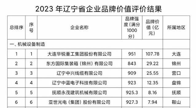 大連重工品牌價(jià)值位列全省企業(yè)品牌價(jià)值榜頭名