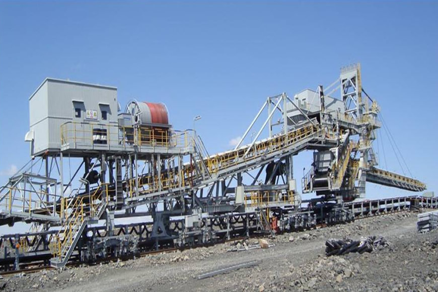 排土機(jī)作為露天礦連續(xù)開(kāi)采或半連續(xù)開(kāi)采工藝中的關(guān)鍵設(shè)備,處于設(shè)備系統(tǒng)的最后一環(huán)。在露天礦開(kāi)采和土石方作業(yè)中,排土機(jī)作為移動(dòng)式連續(xù)作業(yè)的排料設(shè)備,將帶式輸送機(jī)系統(tǒng)運(yùn)送過(guò)來(lái)的表土或剝離物排放于排土場(chǎng)。大連重工已自行研制出型號(hào)為895~5000m3/h(1000~10000t/h)、受料臂長(zhǎng)18~50m,排料臂長(zhǎng)30~60m,并可配置軌道式卸料車(chē)和履帶式卸料車(chē),適合客戶(hù)不同需求的排土設(shè)備。
