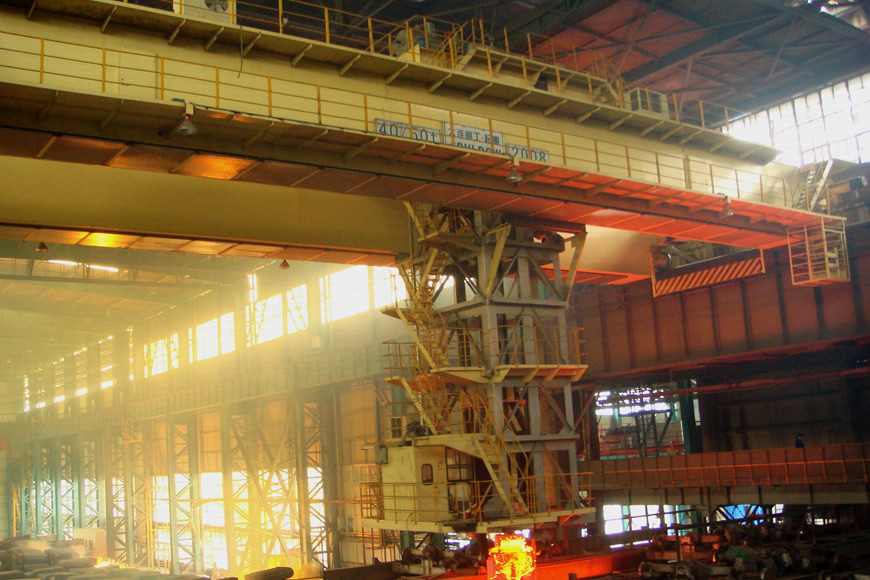 鑄造起重機是煉鋼連鑄工藝中的主要設備之一,主要用于轉爐加料跨向轉爐兌鐵水,在精煉跨將鋼水吊運至精練爐或在鋼水接受跨將鋼水吊運到連鑄回轉大包臺上。大連重工設計制造的75-480噸鑄造起重機服務于國內各大鋼廠,并出口至印度、巴西、墨西哥、泰國、馬來西亞等國家。