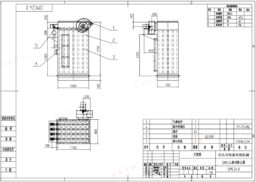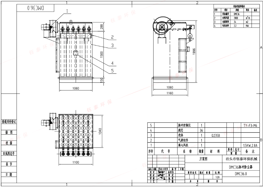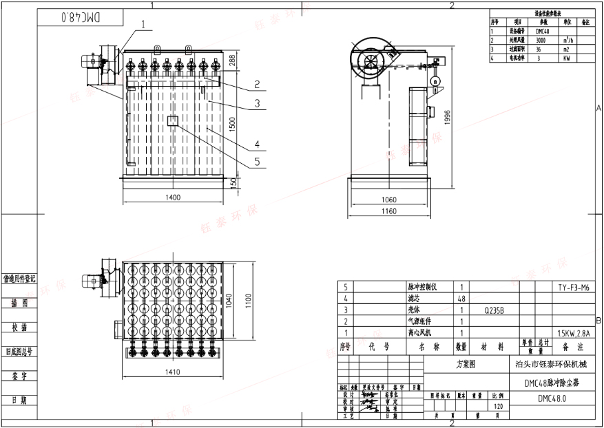 設備型號 | 處理風量(m³/h ) | 濾袋數量(只) | 過濾面積(㎡) | 電機功率(Kw) |
