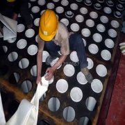 近日,我公司接到山西太水泥廠窯尾除塵器更換除塵布袋項(xiàng)目,此次更換的布袋為高溫覆膜氟美斯布袋,在布袋的安裝過(guò)程中要注意布袋的保護(hù),不可為趕緊工期不按要求安裝,防止覆膜在安裝過(guò)程中損壞。安裝完畢后要進(jìn)入除塵器底部觀察布袋的底部是否充實(shí),防止漏裝袋籠的下半
